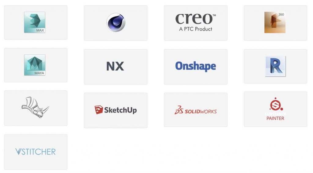KeyShot importiert direkt über 40 verschiedene 3D-Dateiformate aus über 20 – 3D-Modellierungsanwendungen, ohne dass ein Plugin erforderlich ist. Aus dem Datei – Menü wählen Sie Öffnen … oder Import … einzigartige Möglichkeiten für die 3D – Daten, die Sie importieren müssen zu bringen. Der direkte Import aller wichtigen 3D-Modellierungsanwendungen sowie generischer 3D-Dateiformate ist in KeyShot HD, Pro und Enterprise enthalten.